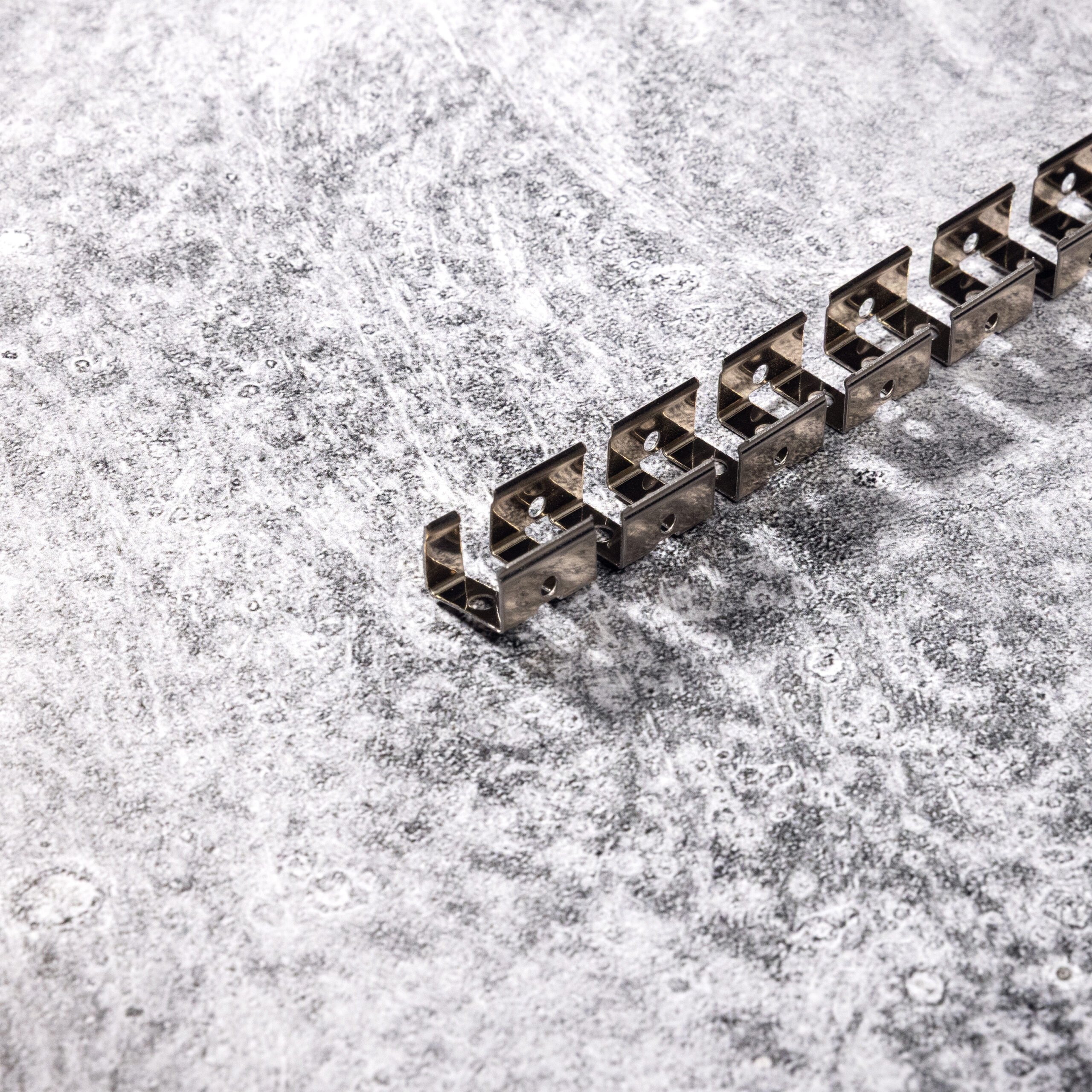Mounting holes are pre-punched at quarter-inch intervals along the length of the bracket, offering precise placement and fast installation in custom or large-scale environments. Brackets are available in multiple sizes to support various LED tape and extrusion formats. Each roll includes 5 meters of flexible channel. For extended lengths beyond 5 meters, please contact us directly.
