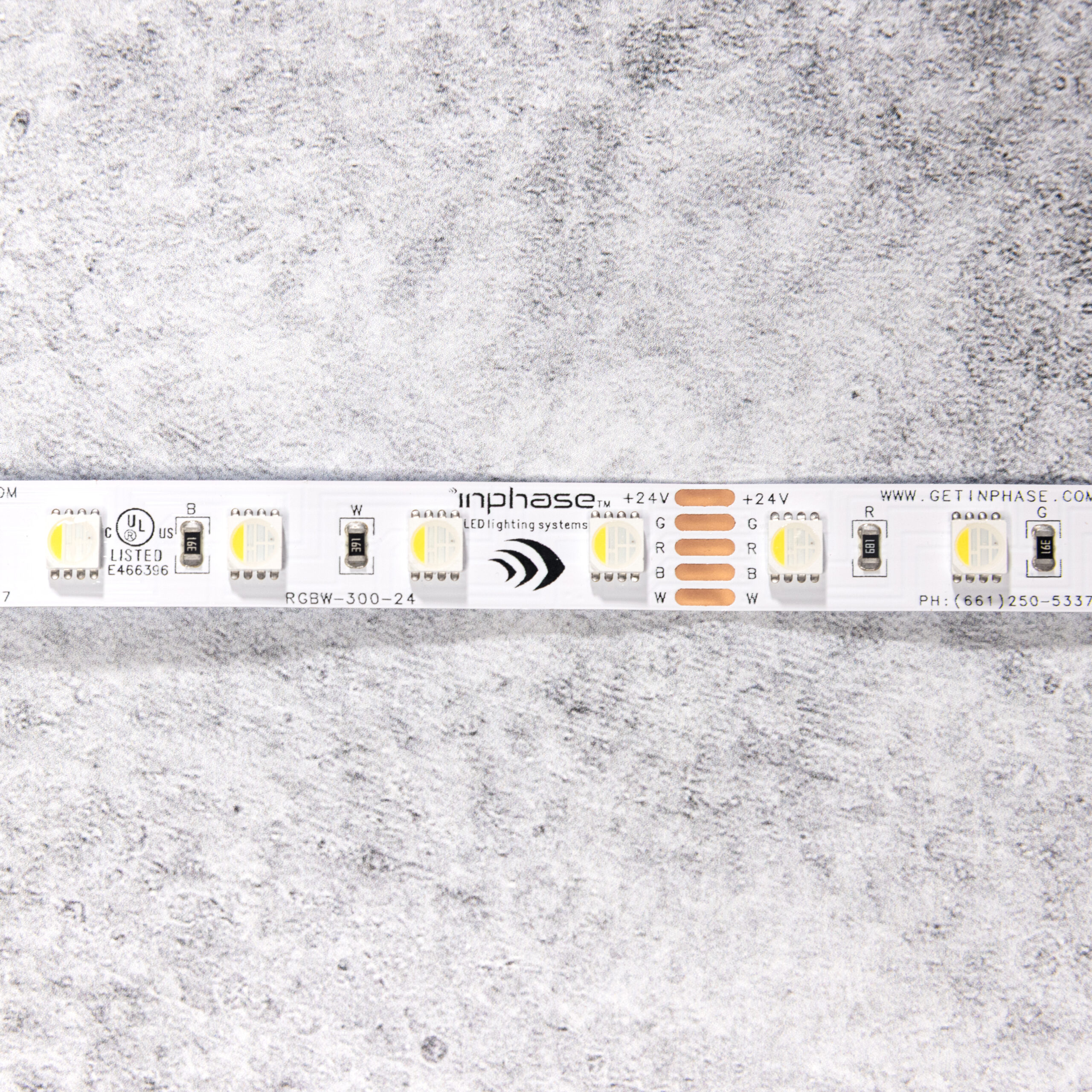 Each 5-meter (16.4-foot) roll features 300 premium 5050 4-in-1 LEDs mounted on a 3 oz copper flexible PCB, ensuring even voltage distribution, excellent thermal stability, and reduced color degradation over long runs. The integrated dedicated cool white channel adds flexibility for use in hybrid color and white-light applications without compromising on output quality.