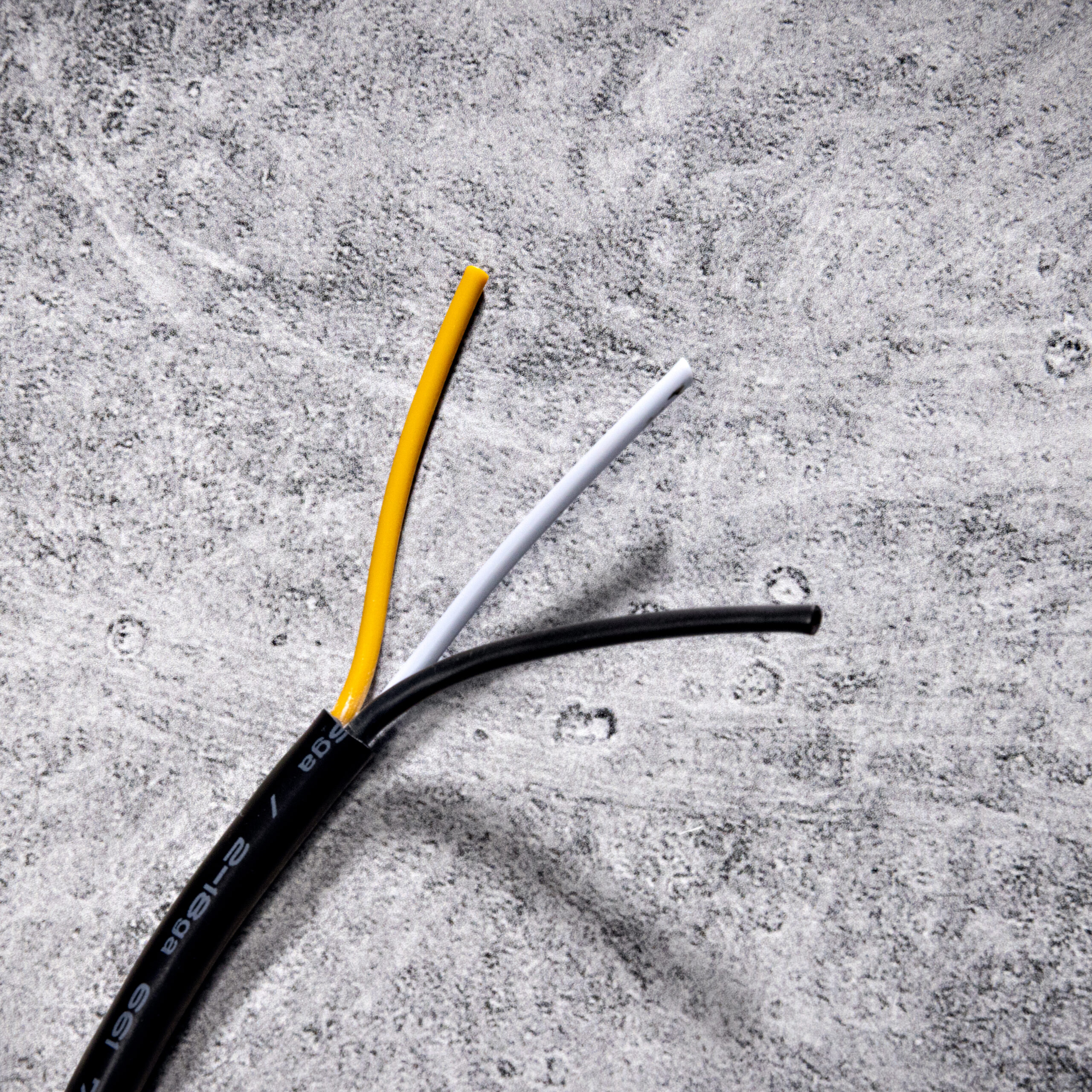 Our Three Conductor cable is a flexible, high-strand wire solution designed for use with Hybrid CCT (tunable white) or single-color LED tape. Built with the same soft jacket construction as our RGB+2 cable, this three-conductor wire ensures minimal tension at solder points, allowing for clean, reliable connections to LED tape pads. The combination of flexibility and high strand count makes it ideal for installations that require precise handling and long-term durability. For best results, reinforce each wire-to-tape connection with a small piece of Speed Tape.